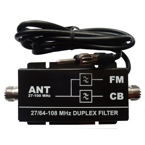 Дуплексный фильтр 27/64-108 МГц используется для возможности работать одновременно автомагнитоле и радиостанции на одной антенне.